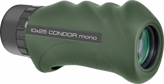 De Bresser Condor Serie biedt zeer duurzame waterdichte verrekijkers. De kijkers zijn van hoge kwaliteit en met zorg gefabriceerd. Zo ook deze Bresser Condor 10×25 Mono. De monokijker is voorzien van een BaK-4 prisma en alle lensdelen zijn volledig multi gecoat. Het twist-up oculair zorgt voor een aangename inkijk en kan makkelijk aangepast worden aan de wens van de gebruiker. De compacte kijker is ideaal voor wandelingen en tochten. Het is een handzaam model, met een polsband die exact ingesteld kan worden, zodat u een goede strakke grip heeft bij het kijken. De ergonomische rubberen bekleding beschermt de verrekijker tegen een stootje en geeft de gebruiker een comfortabele grip.