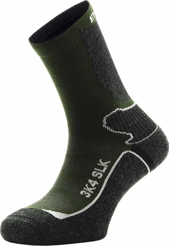 De enkelhoge Trekkingsock SLK-3K4 HIGHLANDS, verkrijgbaar in olijfgroen en zwart, gemaakt van Merinowol en zijde, is perfect voor winterse activiteiten, in midden- en hooggebergte, maar ook bij lage temperaturen, mede omdat de thermoregulerende eigenschappen van zijdewol zelfs met een natte sok effectief zijn.