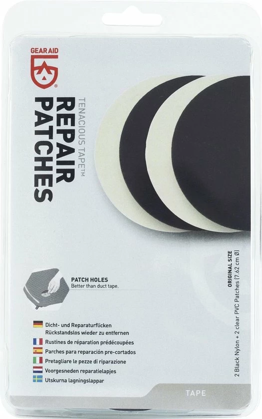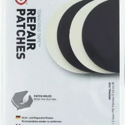 Een set van 4 reparatie patches. Geschikt voor het repareren van gaten en scheuren in tenten, tarpen, opblaasbare spullen, slaapzakken, jassen, regen spullen etc. Deze set bevat 2 zwarte nylon patches en 2 doorzichtige PVC patches voor vrijwel onzichtbare reparaties. Ongeacht het weer, deze pleisers blijven intact en zullen niet afschilferen of losraken door zon of regen.