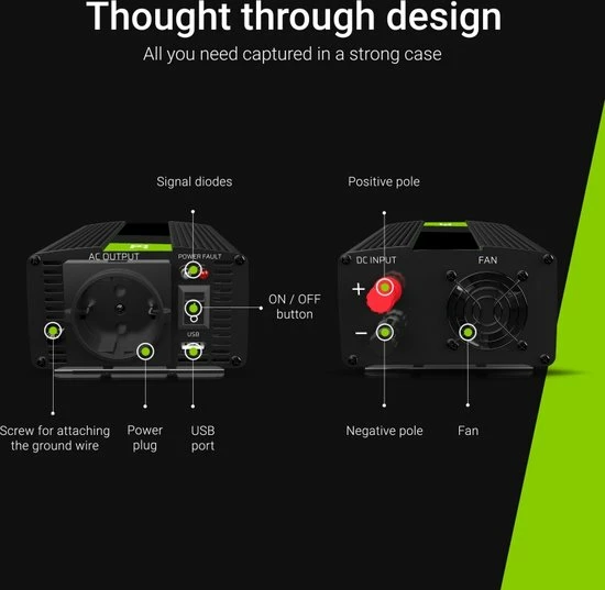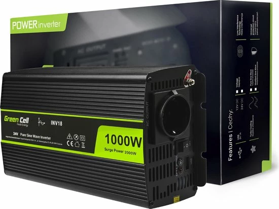 De Green Cell 1000W/2000W zuivere sinusomvormer 24V 230V is een perfecte apparaat om uw elektrische apparaten overal en altijd mee op te laden. Tevens is dit de beste oplossing als u niet in de buurt van de stroombron bent. Hij heeft stopcontacten om de elektrische apparaten veilig en snel aan te sluiten en op te laden. Het bevat ook een USB-poort om kleinere apparaten zoals smartphones en tablets op te laden. U hoeft zich geen zorgen te maken over overspanning, want de omvormer is uitgerust met veiligheidsvoorzieningen en veiligheidscertificaten voor een soepele werking. Daarnaast beschikt het over een zuivere sinusgolf die perfect werkt met apparaten die continu stroom nodig hebben, zoals bouwmachines, zonne-energiesystemen, warmtepompen en verwarmingen. Het bevat ook een intelligente ventilator om de temperatuur milder te houden. Op dit product zit 24 maanden garantie.