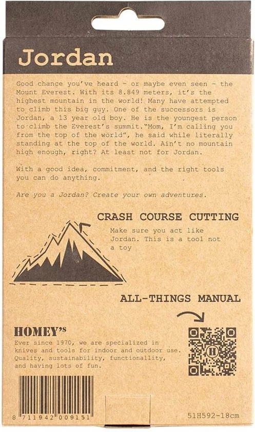 Je bent nooit te jong om groots te dromen. Met het Homey’s Jordan kinderzakmes kan zelfs de kleinste avonturier beginnen aan iedere uitdaging. Durf te dromen en met het juiste idee, de toewijding en het gereedschap kan je alles!