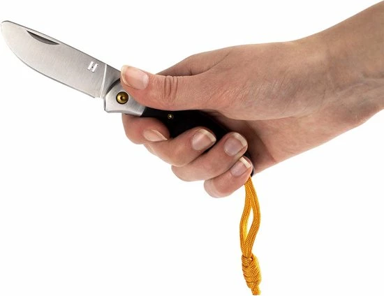 - Lemmet van hoogwaardig RVS met prachtig heft van zwart pakkahout, inclusief 4 verschillende kleuren keycords, verpakking van gerecycled karton
