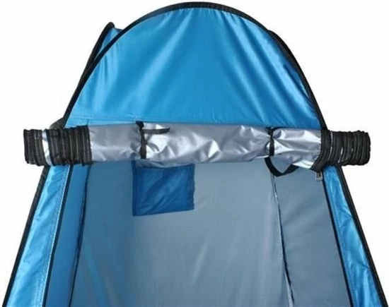 Het product is perfect als kleedkamer, douche, toilet en opbergruimte. Het materiaal is volledig waterdicht zodat je hem makkelijk kan laten staan. De ingang is afgesloten met een dubbel slot en binnenin zit een raam op de achterwand. De tent is aan de ene kant uitgerust met een zak voor het opbergen van cosmetica en aan de andere kant een riem om een ​​handdoek op te hangen. De tent heeft geen vloer dus het gebruik ervan is veel comfortabeler en minder problematisch omdat water zich niet binnenin ophoopt en na het douchen hoef je niet te wachten tot de tent droog is. Hierdoor is het schoon houden heel eenvoudig.