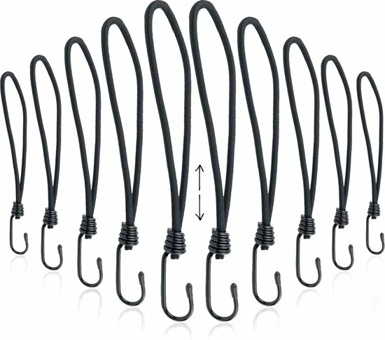 Deze Premium Spanelastiek Spanner set van 10 stuks is onderdeel van de nieuwe premium serie. Deze handige bevestigingshaak heeft een hoge elasticiteit met een stevige en met rubber beschermde haak. Handigheid en degelijkheid. Dat is de filosofie achter dit premium elastiek voor tent, aanhangwagen afdekzeil, bevestiging van materialen en spandoeken. Verder heeft deze spanner een slank, doordacht design, waardoor de elastische spinhaak op veel verschillende manieren te gebruiken is. De spanelastiek kan tot wel 50 procent van zijn eigen lengte worden opgespannen, wat fijn is om tentharingen of een dekzeil voor een kar mee vast te zetten. Door de hoge flexibiliteit van de elastiek wordt het ophangen van een doek, spandoek of tuindoek een makkie.