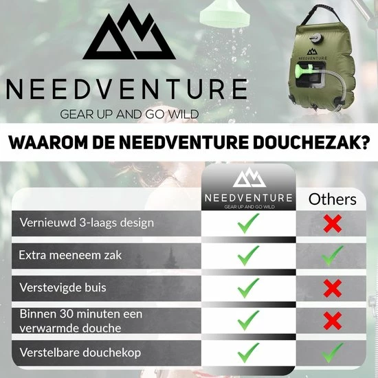 Onze tip: Zorg voortaan zelf voor een lekkere warme douche op elk moment. Haal vandaag nog je eigen Needventure Douchezak in huis en ga nooit meer onvoorbereid de deur uit!