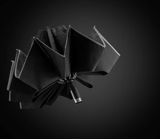 De omgekeerde No Drip Umbrella herenparaplu gaat via één knop automatisch open en dicht. De paraplu open en dicht doen tijdens het in- en uitstappen vanuit de auto wordt daarmee wel heel makkelijk. Ook tijdens een flinke regenbui opent u met één hand de No Drip Umbrella, zonder dat uw eigendommen of uzelf nat worden. Verder zit er onderin het handvat een ring, waardoor u de paraplu handig kunt ophangen of vasthouden.