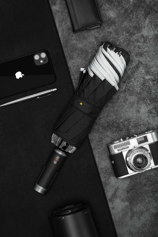 - Uniek revolutionaire omgekeerd ontwerp, zorgt ervoor dat uw eigendommen (in uw auto en tas) droog blijven.