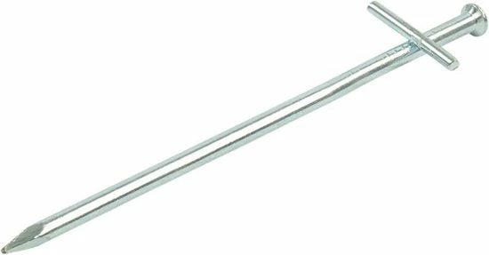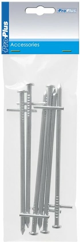 Deze rotspennen van ProPlus hebben een lengte van 17 cm en een aangelaste dwarspen voor de bevestiging van scheerlijnen of afspanrubbers. Geschikt voor een harde bodem.
