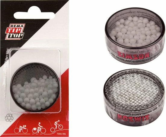 Kleine foamkorrels. Te gebruiken om het lek te vinden in de binnenbanden van de fiets, een luchtbed etc.