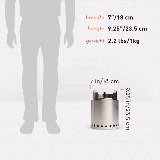 Ons gepattenteerd 360° luchtstroom ontwerp zorgt voor een super efficiente verbranding. En dit slechts met behulp van een aantal takjes en bladeren of kleine stukjes hout.