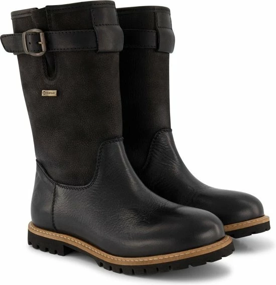 Het verstelbare riempje op de kuit geeft deze pull on boot een stoer uiterlijk.